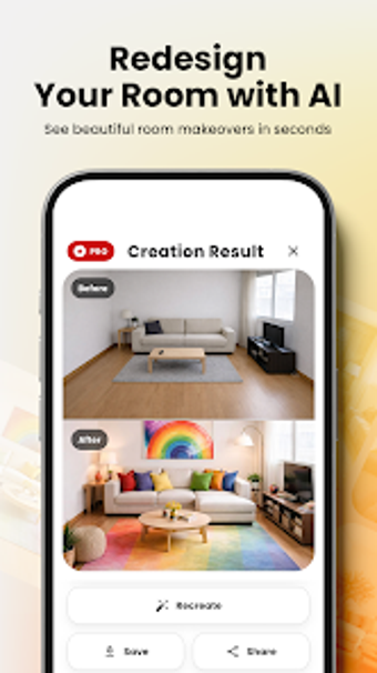 بالإضافة إلى تصور أفكار التصميم، يوفر رينوفي اقتراحات ذكية للأثاث والديكور ولوحات الألوان التي تتماشى مع النمط المختار. يمكن للمستخدمين حفظ ومشاركة تصاميمهم المفضلة، مما يسهل التعاون مع الأصدقاء أو المصممين المحترفين. مع إلهام لا نهاية له في متناول أيديهم، يمكّن رينوفي المستخدمين من تجديد ديكوراتهم الداخلية أو التخطيط لمشاريع تجميل منزل شاملة بسهولة.